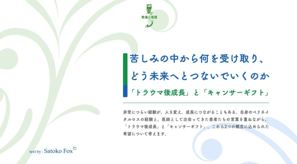 『教養と看護』に寄稿しましたートラウマ後成長(PTG)とキャンサーギフト