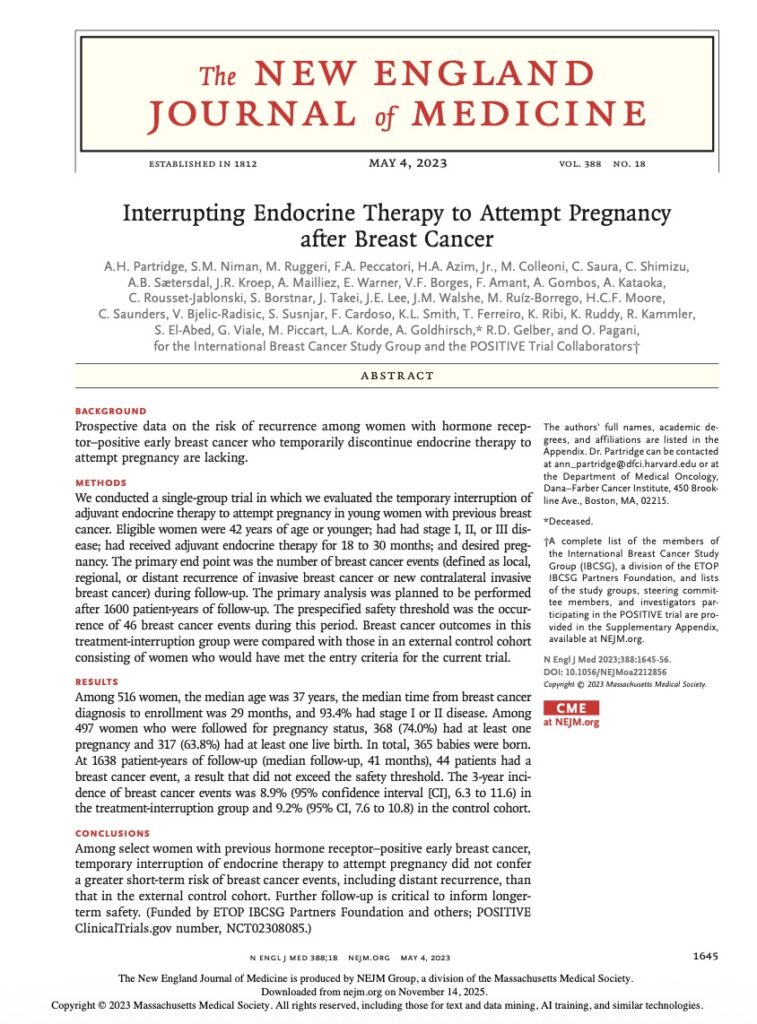 そこで注目されるのが、POSITIVE試験——「ホルモン療法を一時中断して妊活をしても安全か?」を検証した国際的な臨床試験です。